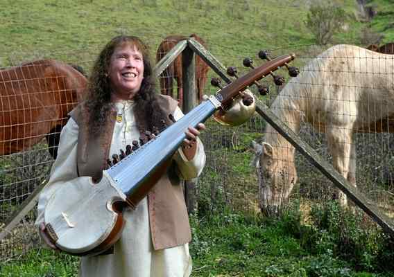 Laurie plays the gorgeous instrument, sarode (or sarod), which she learned from her teacher, Ali Akbar Khan. Its Sanskrit name is "Sarode-Dhayak-Veena."
